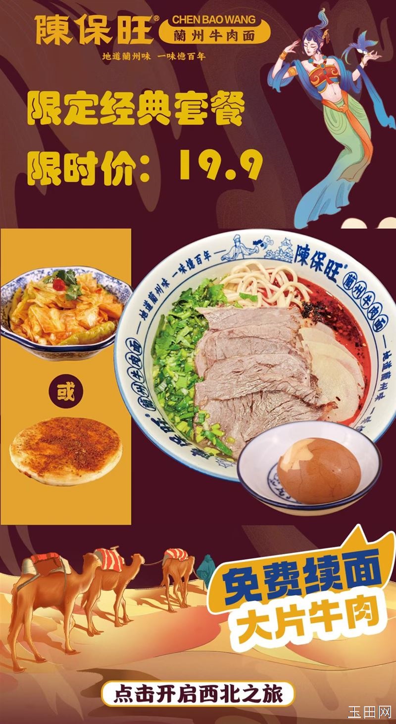 陳保旺兰州牛肉面推出现时经典套餐原价25.9现价19.9元数量有限先到先得。