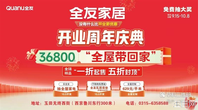 玉田全友家居开业周年庆典盛大开启‼️ 全场成品满10000送10000